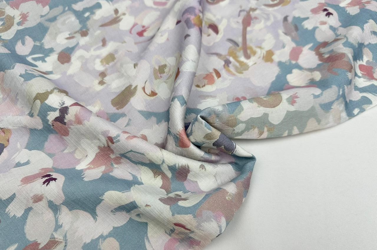 Легкая летняя плательная ткань с вискозой в составе. Подойдет для пошива весенне-летних изделий. Струящаяся, приятная на ощупь. светлые тона имеют легкий просвет.