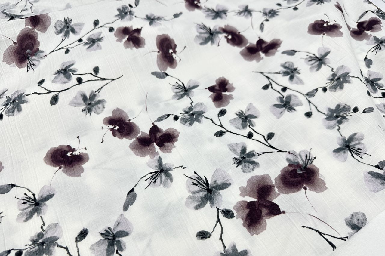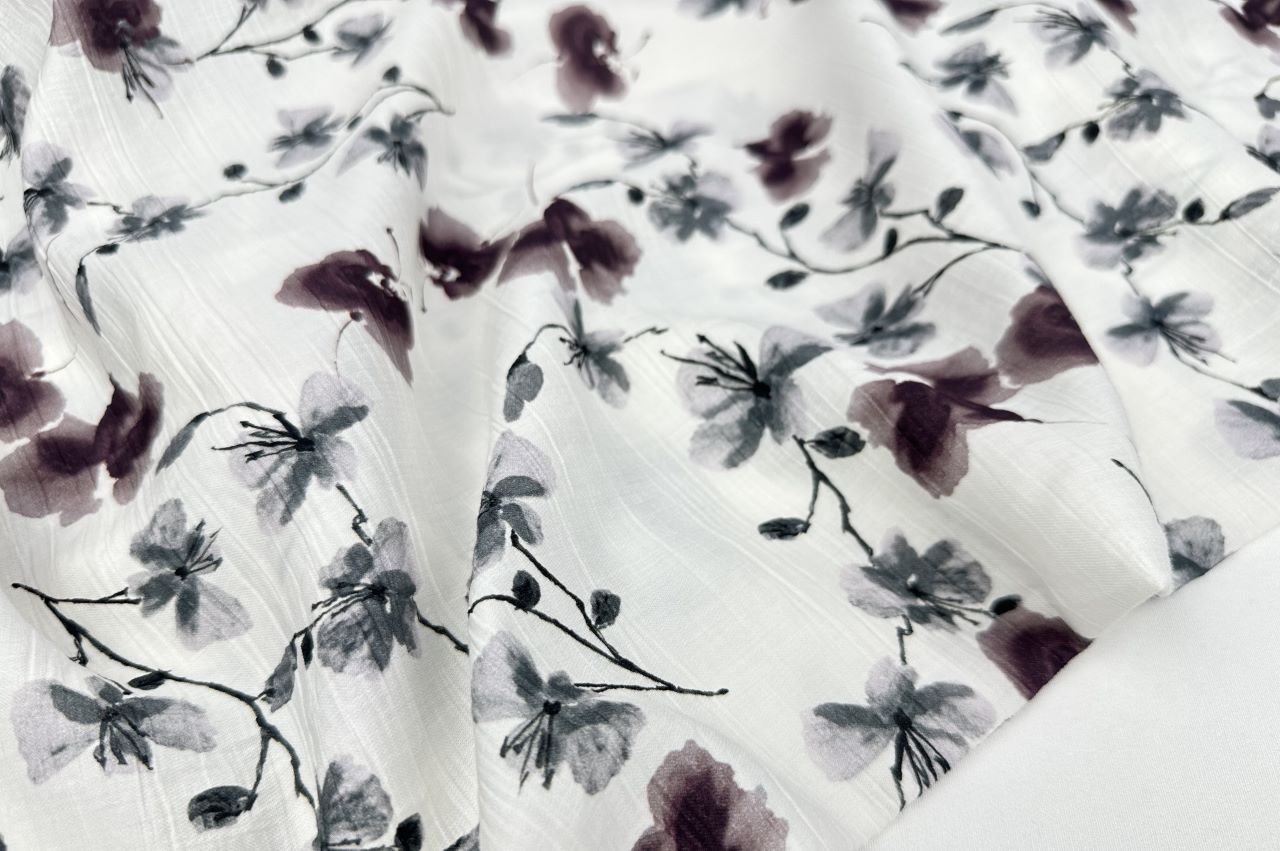 Плательная вискоза "Медея" принт d3 бургунди