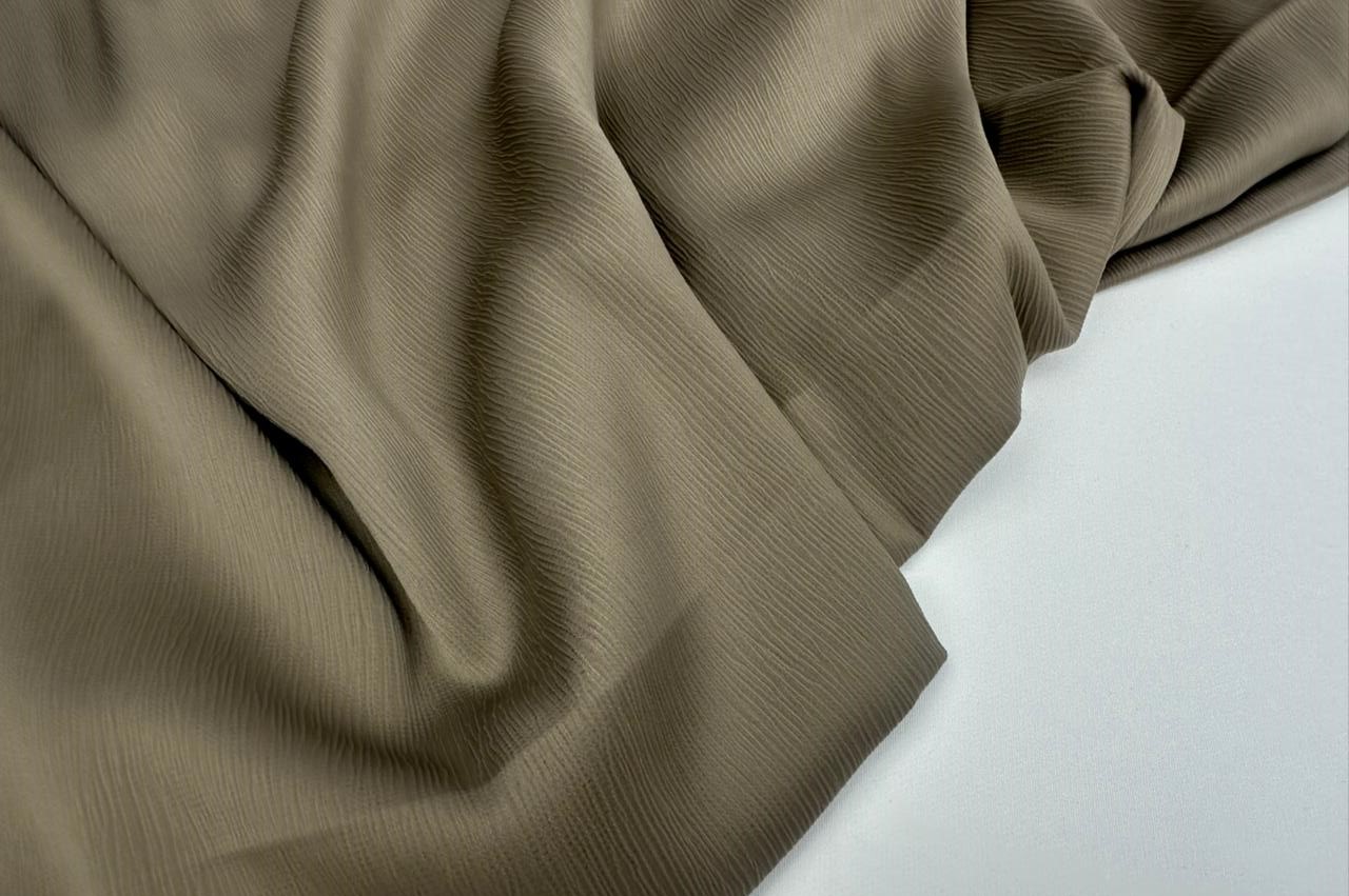 Новый шелк крэш, легкий, струящийся, не просвечивает. Отлично подойдет для пошива женских изделий. Эффект крэш, придает ткани интересную структуру и является актуальной и практичной тенденцией последних лет.