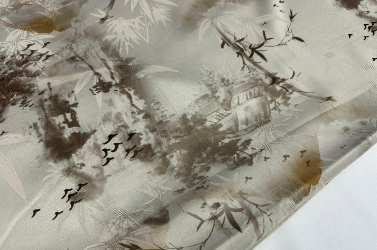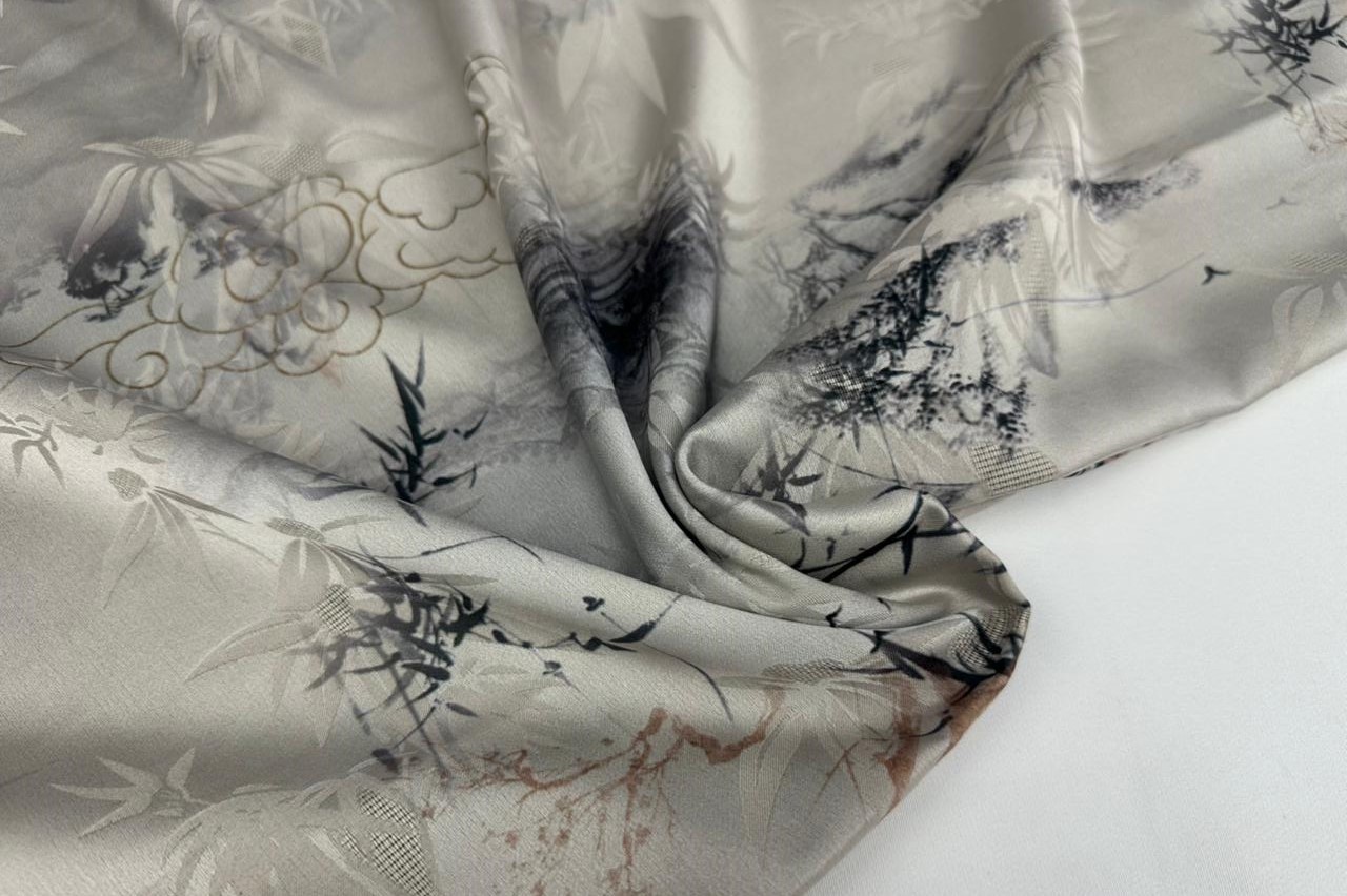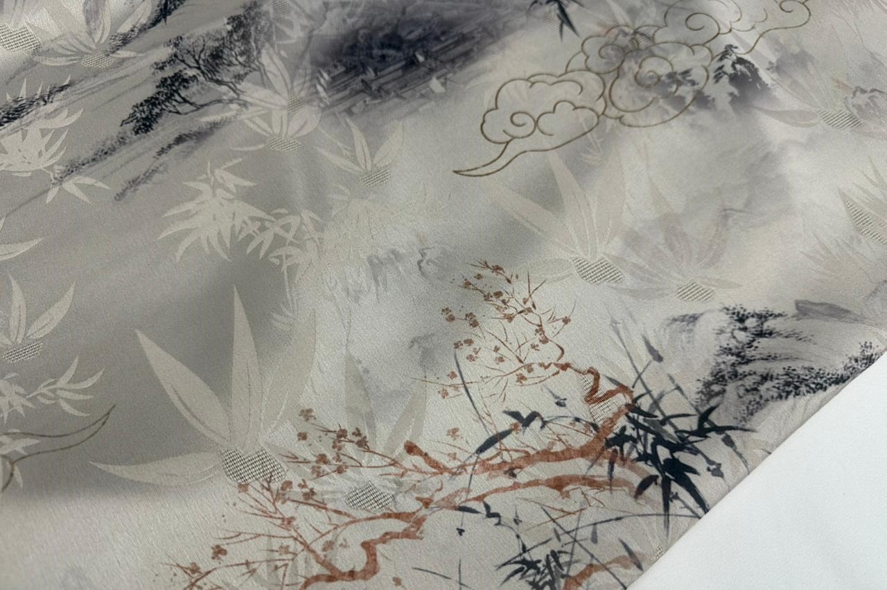 Шелк жаккард " Китайский сюжет" серый с зеленцой